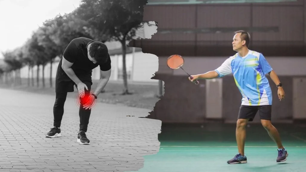 (Paling banyak kes) kekakuan, bengkak dan sakit pada lutut, lutut tidak stabil ketika berjalan atau menuruni tangga